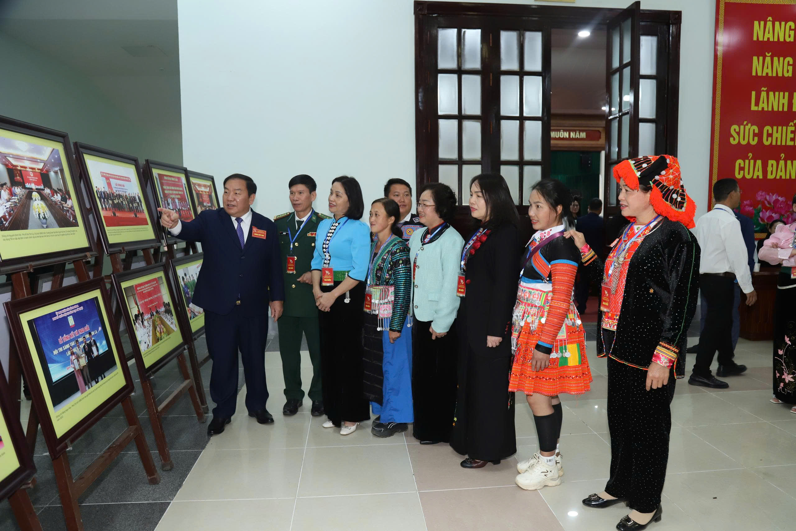 Các đại biểu tham quan triển lãm ảnh các hoạt động của MTTQ Việt Nam và các tổ chức thành viên; các kết quả phát triển KT-XH nổi bật của tỉnh Sơn La: