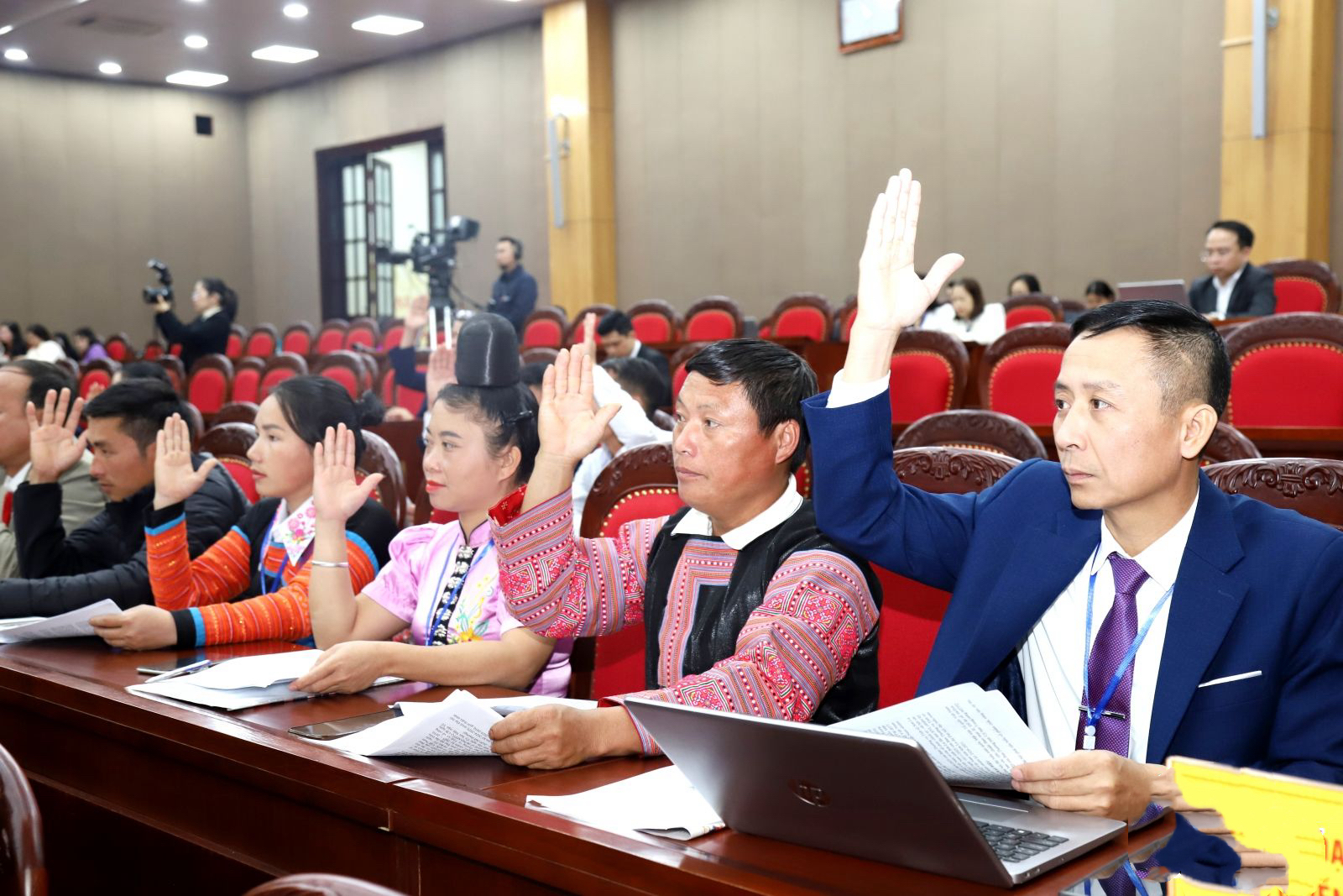 Các đại biểu biểu quyết các chỉ tiêu tại Đại hội.