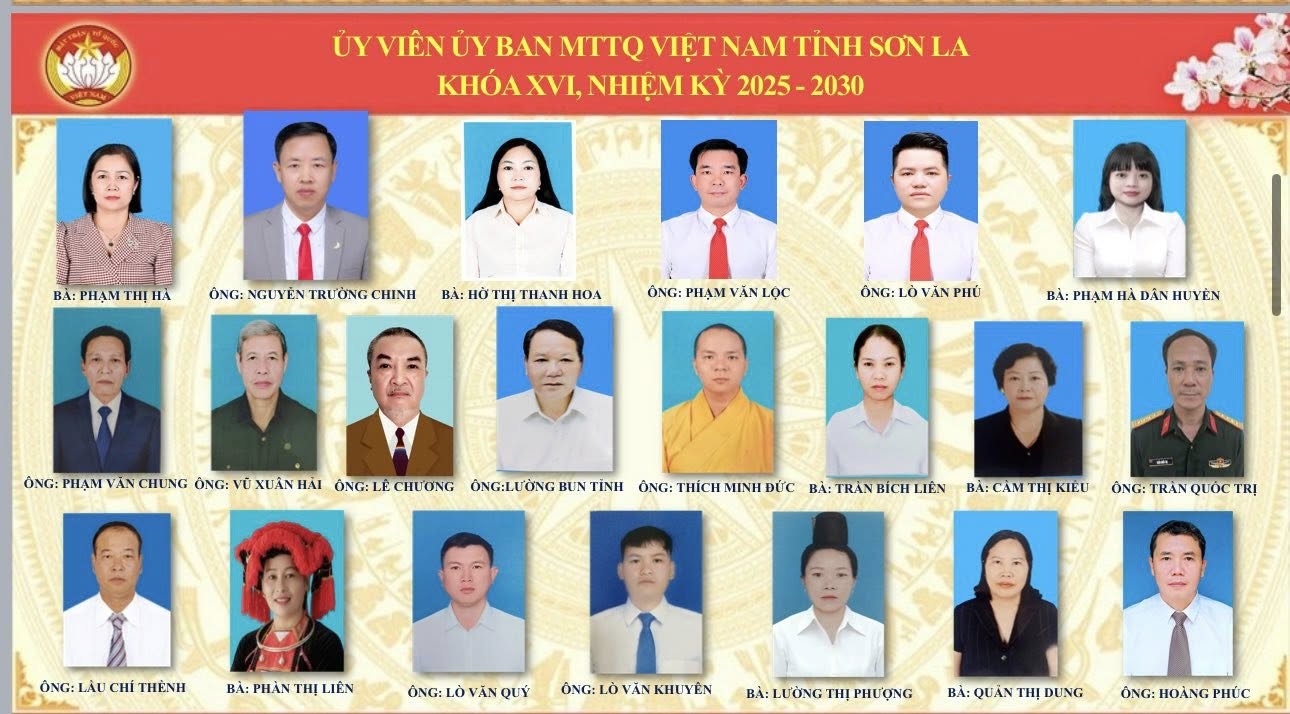 Danh sách Uỷ viên Ủy ban MTTQ Việt Nam tỉnh Sơn La khóa XVI