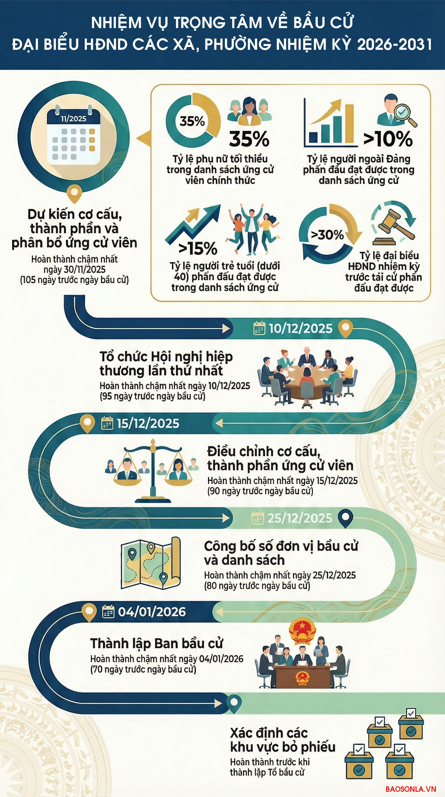 28/11/2025 A- A A+ | Nhiệm vụ trọng tâm về bầu cử đại biểu HĐND các xã, phường nhiệm kỳ 2026-2031 Đọc bài Lưu Nguồn tin: baosonla.vn