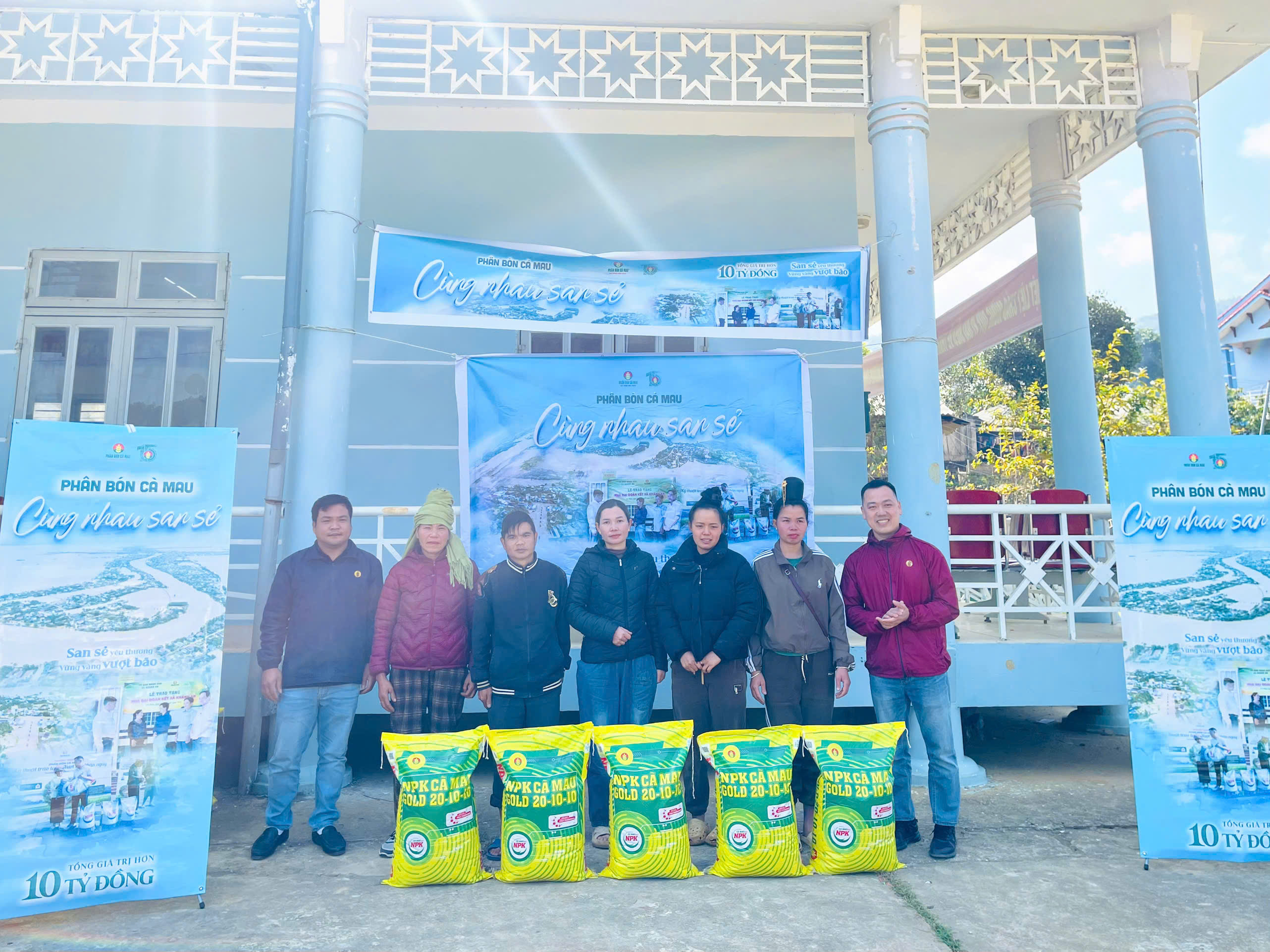 Đơn vị tài trợ trao tặng phân bón NPK Cà Mau Gold 20-10-10 cho các hộ dân có hoàn cảnh khó khăn .