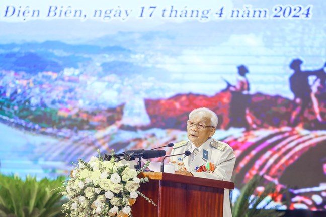 Phát biểu tại cuộc gặp mặt, Thủ tướng Phạm Minh Chính trước hết chuyển lời chào trân trọng, lời thăm hỏi ân cần, lời chúc sức khỏe, lời chúc mừng tốt đẹp nhất của Tổng Bí thư Nguyễn Phú Trọng đến các bác, các cô chú, các anh chị chiến sĩ Điện Biên, thanh niên xung phong, dân công hỏa tuyến, nhân dân các dân tộc tỉnh Điện Biên đã góp phần quan trọng làm nên Chiến thắng lịch sử Điện Biên Phủ "lừng lẫy năm châu, chấn động địa cầu".