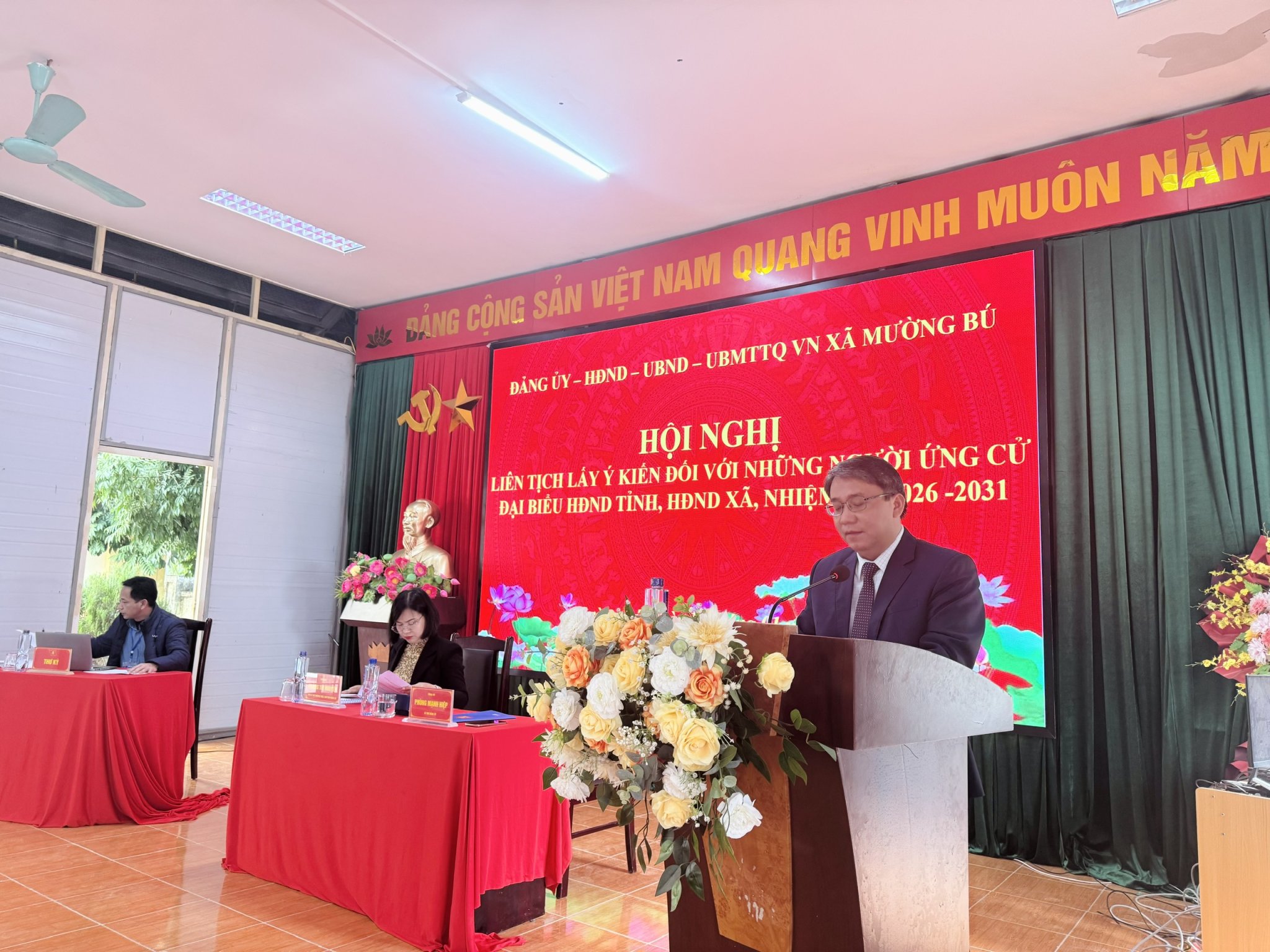 Phát biểu tại Hội nghị, đồng chí Bí thư Đảng ủy xã đã quán triệt mục đích, ý nghĩa, yêu cầu của việc lấy ý kiến cử tri nơi công tác đối với người được giới thiệu ứng cử đại biểu HĐND các cấp. Lãnh đạo Đảng ủy xã cũng đã thông qua tiêu chuẩn, điều kiện, danh sách; giới thiệu tiểu sử tóm tắt của 28 đồng chí thuộc cơ quan Đảng ủy, HĐND, UBND, Ủy ban MTTQ Việt Nam xã được dự kiến giới thiệu ứng cử đại biểu HĐND tỉnh và đại biểu HĐND xã khóa XXII, nhiệm kỳ 2026 - 2031.