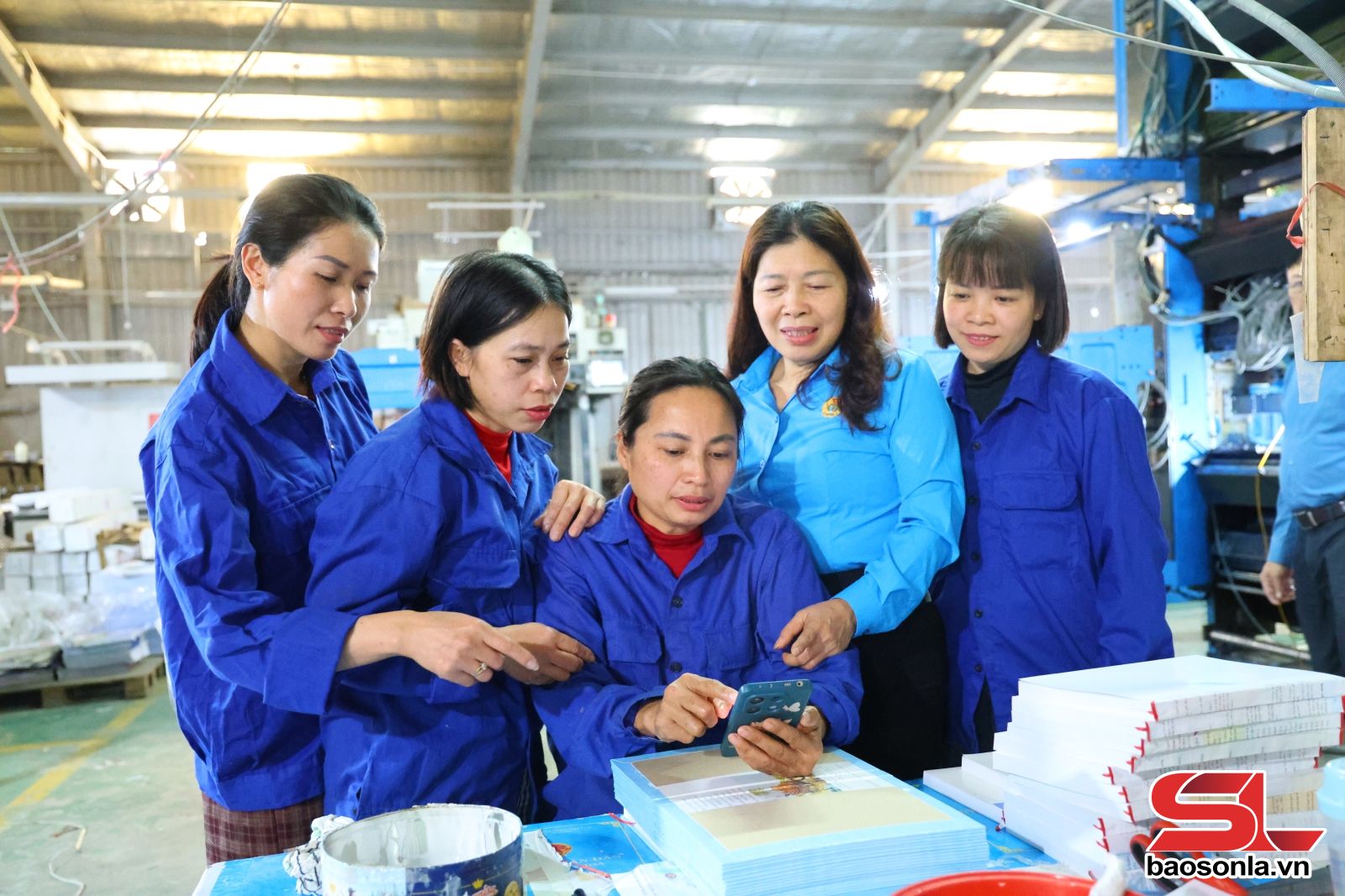 Cán bộ CĐCS Công ty CP in Sơn La hướng dẫn đoàn viên mua sắm trực tuyến tại “Chợ Tết Công đoàn - Xuân 2026”.