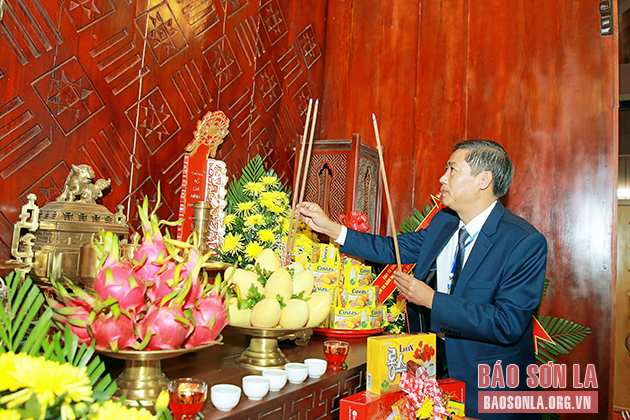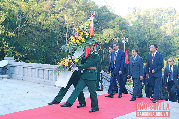 Đồng chí Nguyễn Hữu Đông, Ủy viên Ban Chấp hành Trung ương Đảng, Bí thư Tỉnh ủy, Trưởng Đoàn đại biểu Quốc hội tỉnh Sơn La dâng hương tưởng nhớ Chủ tịch Hồ Chí Minh và Chủ tịch Cay Xỏn - Phôm Vi Hản.
