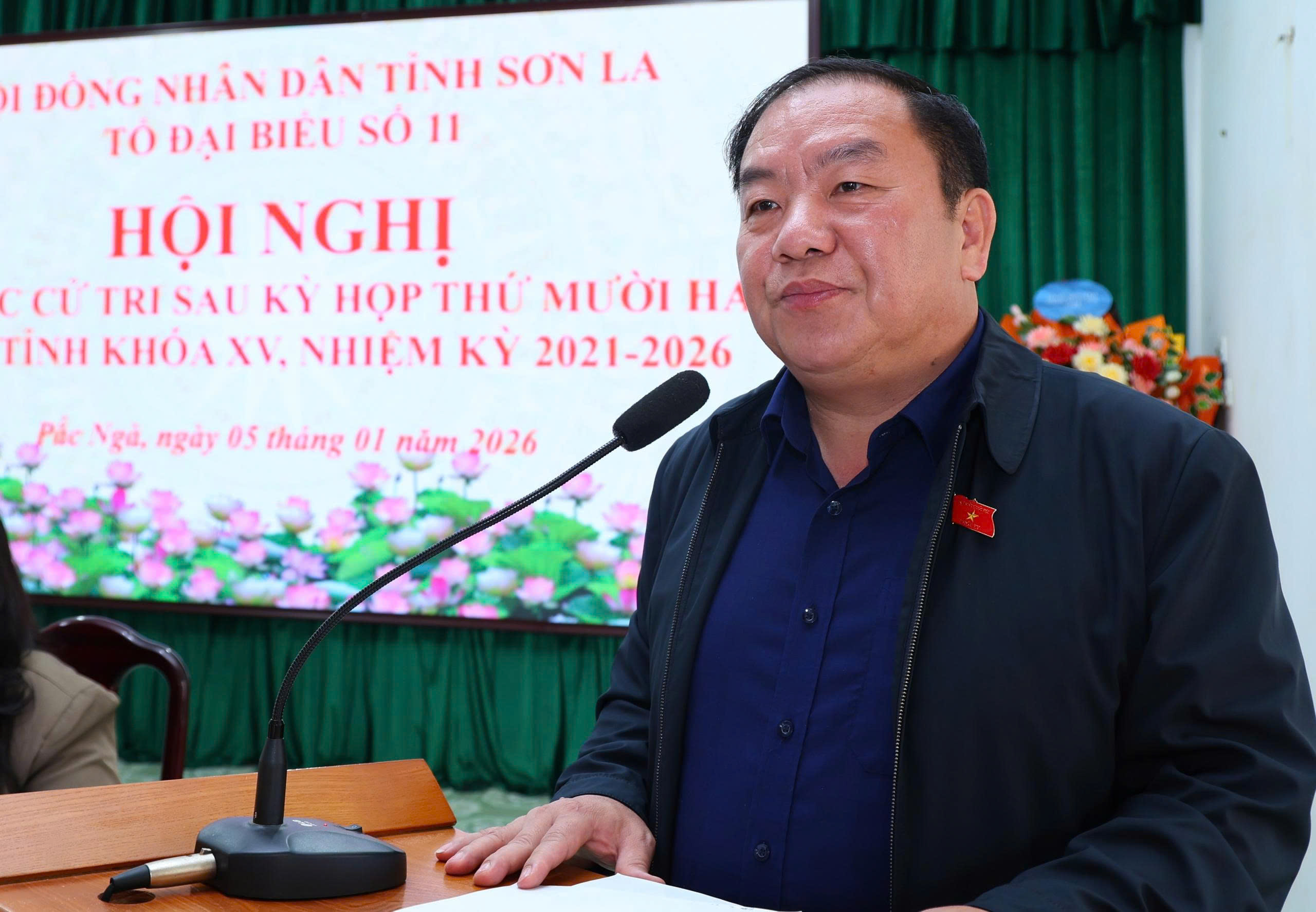 Cử tri xã Pắc Ngà kiến nghị các cấp, các ngành quan tâm xem xét, đưa dự án xây dựng cầu qua sông Đà tại khu vực xã Pắc Ngà sang xã Tà Hộc vào quy hoạch phát triển giao thông và kế hoạch đầu tư công trung hạn, dài hạn giai đoạn 2026-2030; đầu tư xây dựng trụ sở làm việc cho xã; trang bị cơ sở vật chất phục vụ công tác quản lý nhà nước, cải cách hành chính và chuyển đổi số; đầu tư làm đường bê tông từ bản Suối Cải đi bản Cải B và từ bản Nà Sài đi khu Lềnh Tiến thuộc bản Nà Tiến; bố trí kinh phí xây mới, sửa chữa, nâng cấp nhà văn hóa các bản; hỗ trợ, trang bị bộ thiết bị thu nhận hồ sơ căn cước công dân cho Công an xã Pắc Ngà.