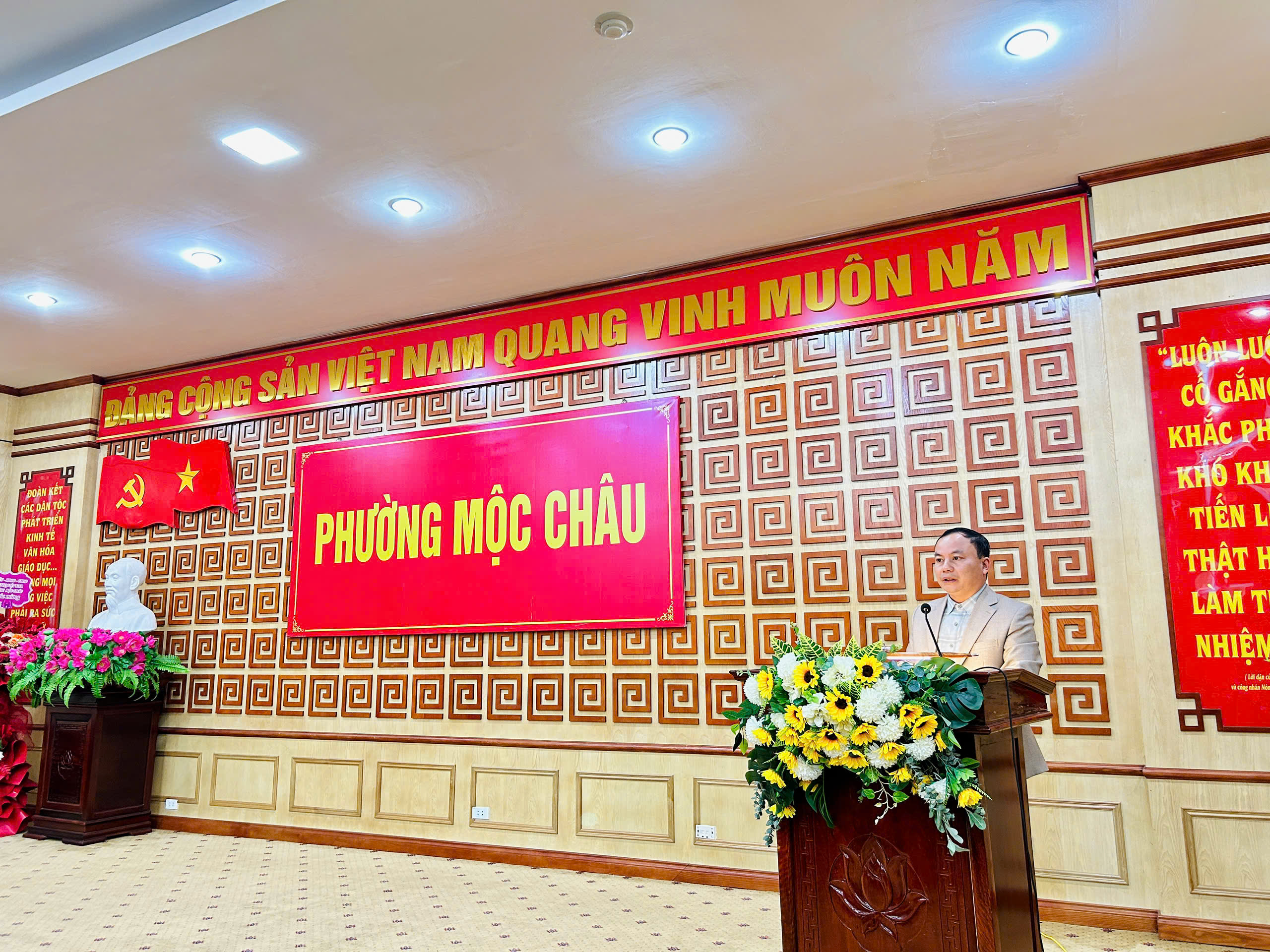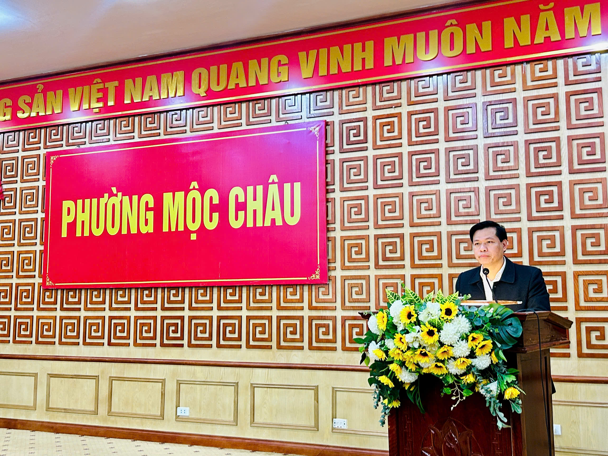 Đồng chí Lê Tiến Lợi - Bí thư Đảng uỷ phường phát biểu tại Hội nghị.