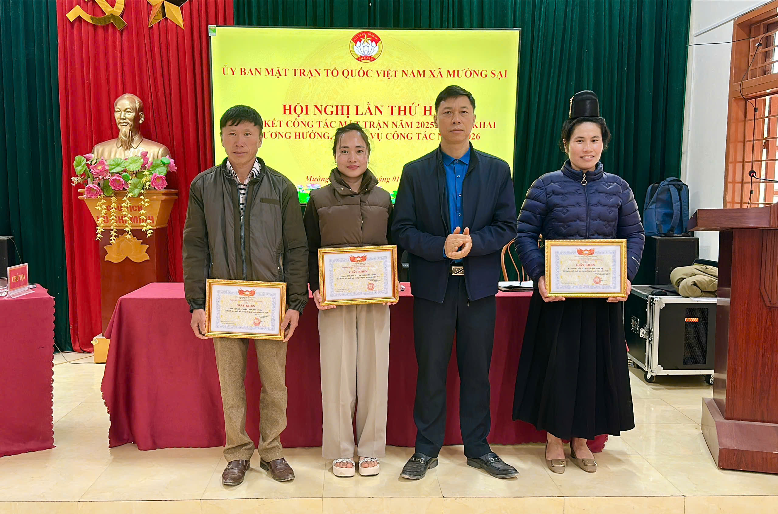 Nhân dịp này, Ủy ban MTTQ Việt Nam xã Mường Sại đã trao tặng Giấy khen cho 03 tập thể và 05 cá nhân có thành tích xuất sắc trong công tác Mặt trận năm 2025.