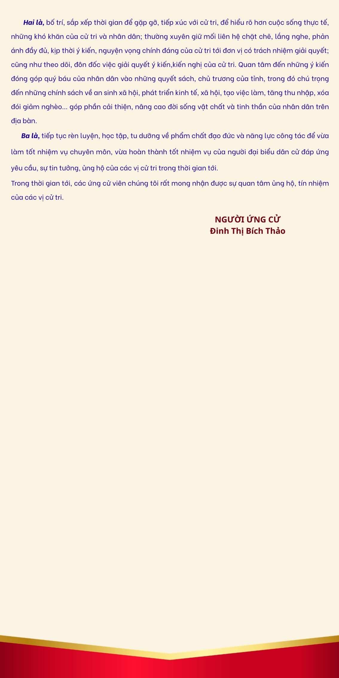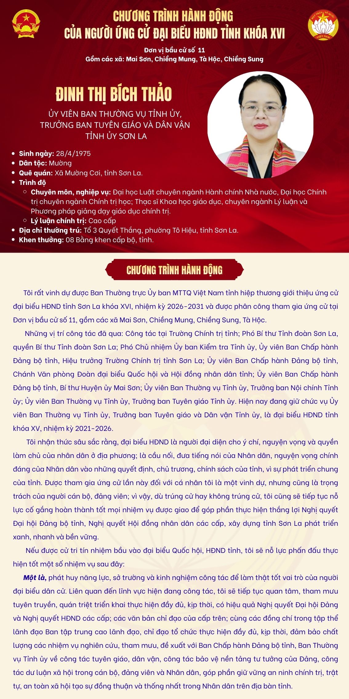 Tiểu sử tóm tắt và Chương trình hành động của đồng chí Đinh Thị Bích Thảo.