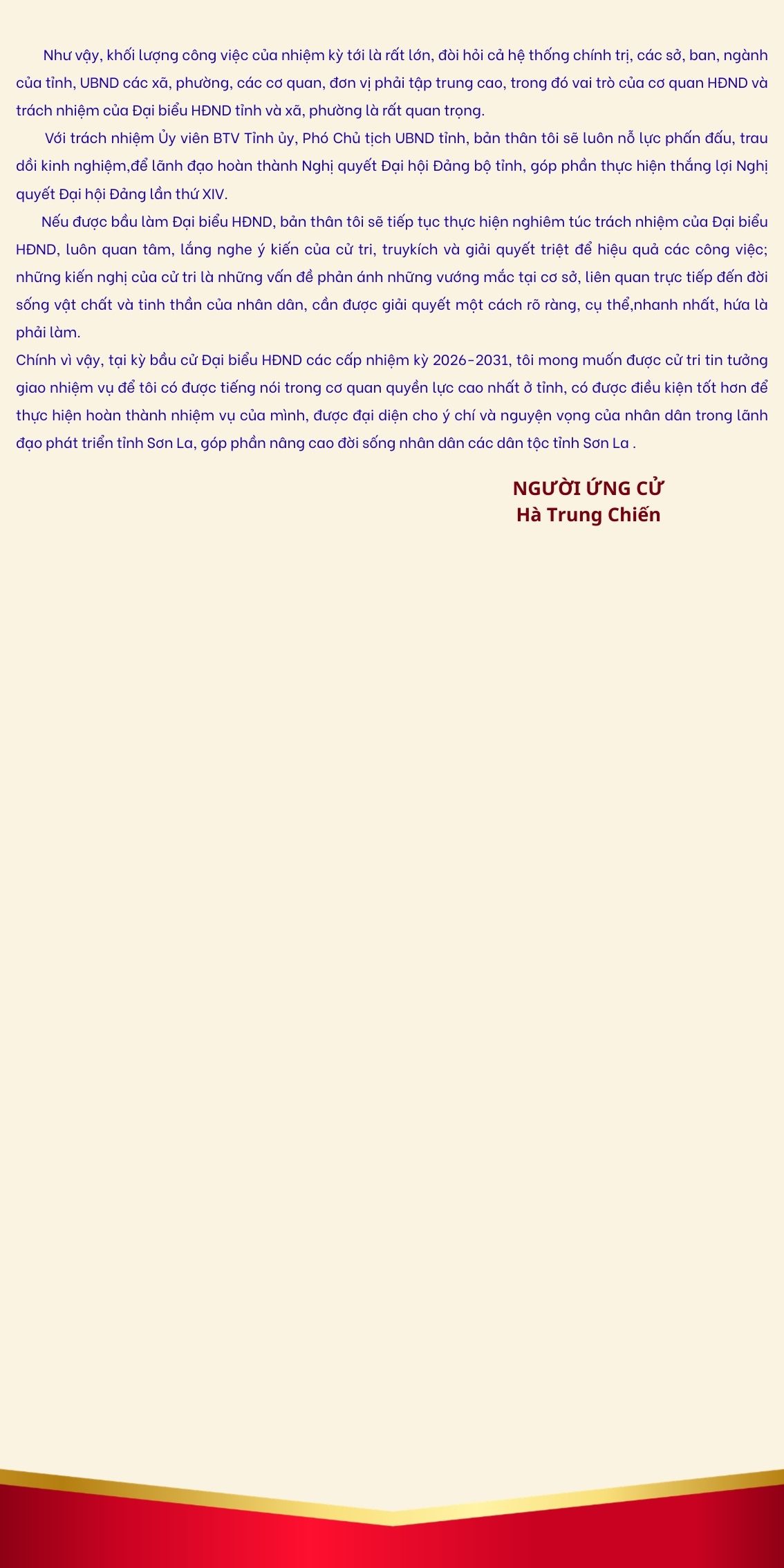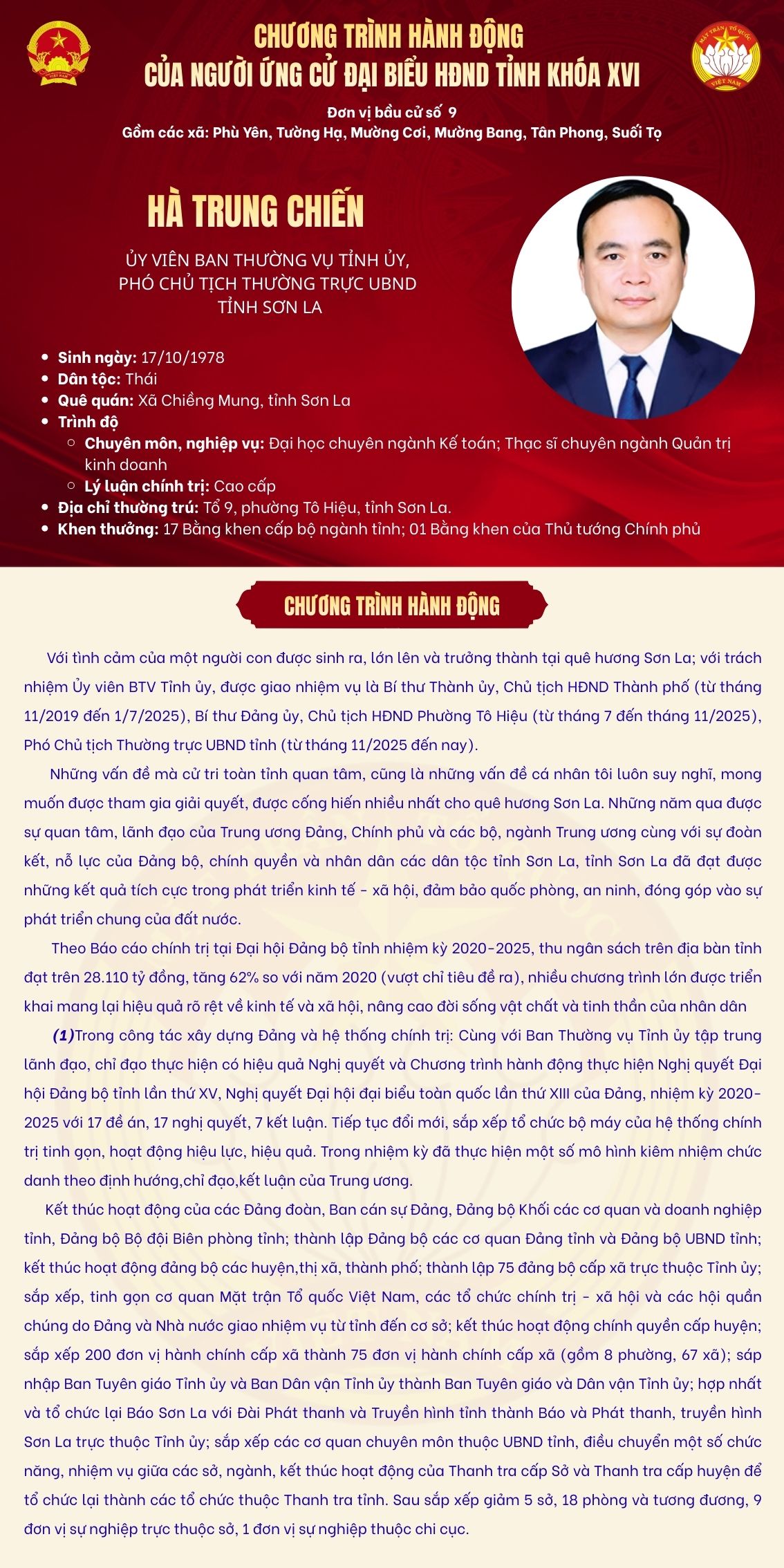 Tiểu sử tóm tắt và Chương trình hành động của đồng chí Hà Trung Chiến.