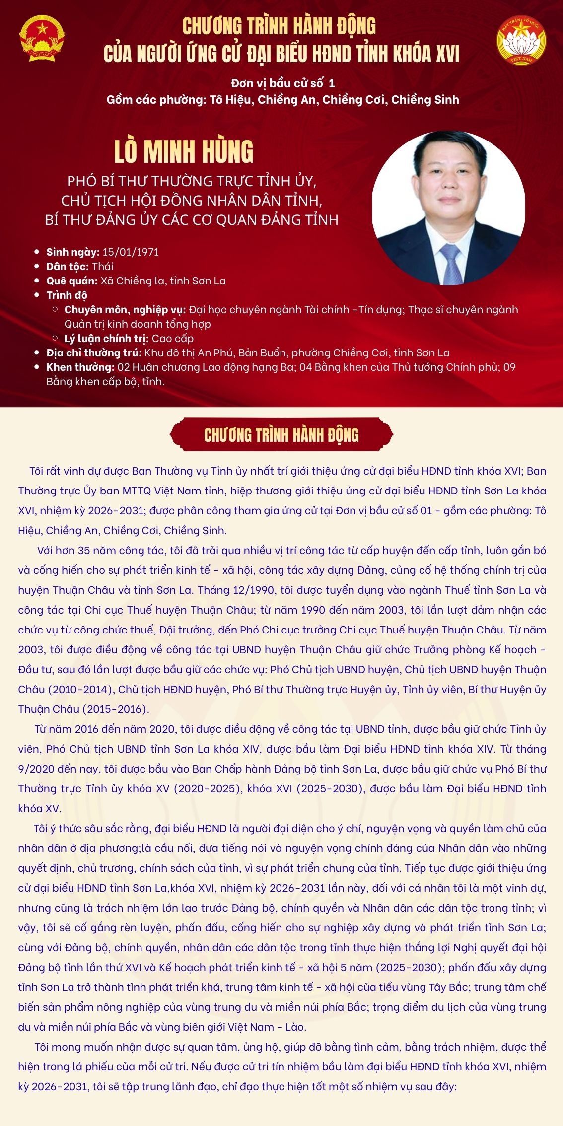 Tiểu sử tóm tắt và Chương trình hành động của đồng chí Lò Minh Hùng.