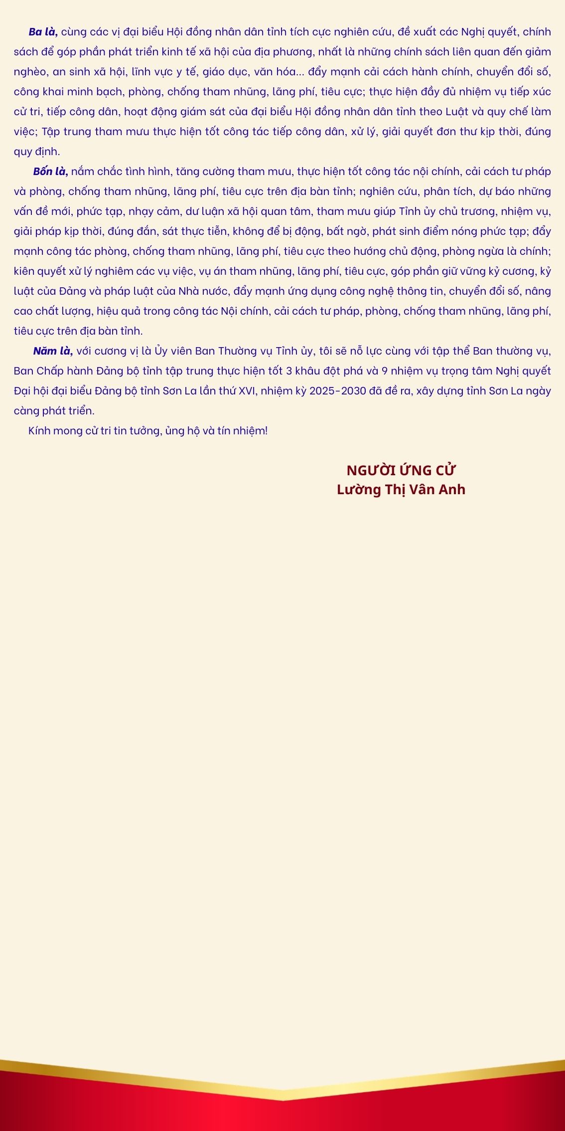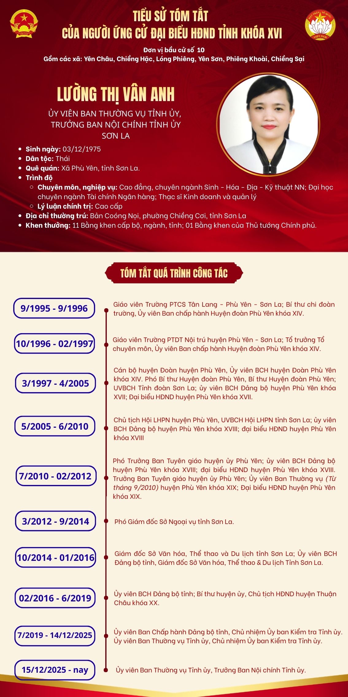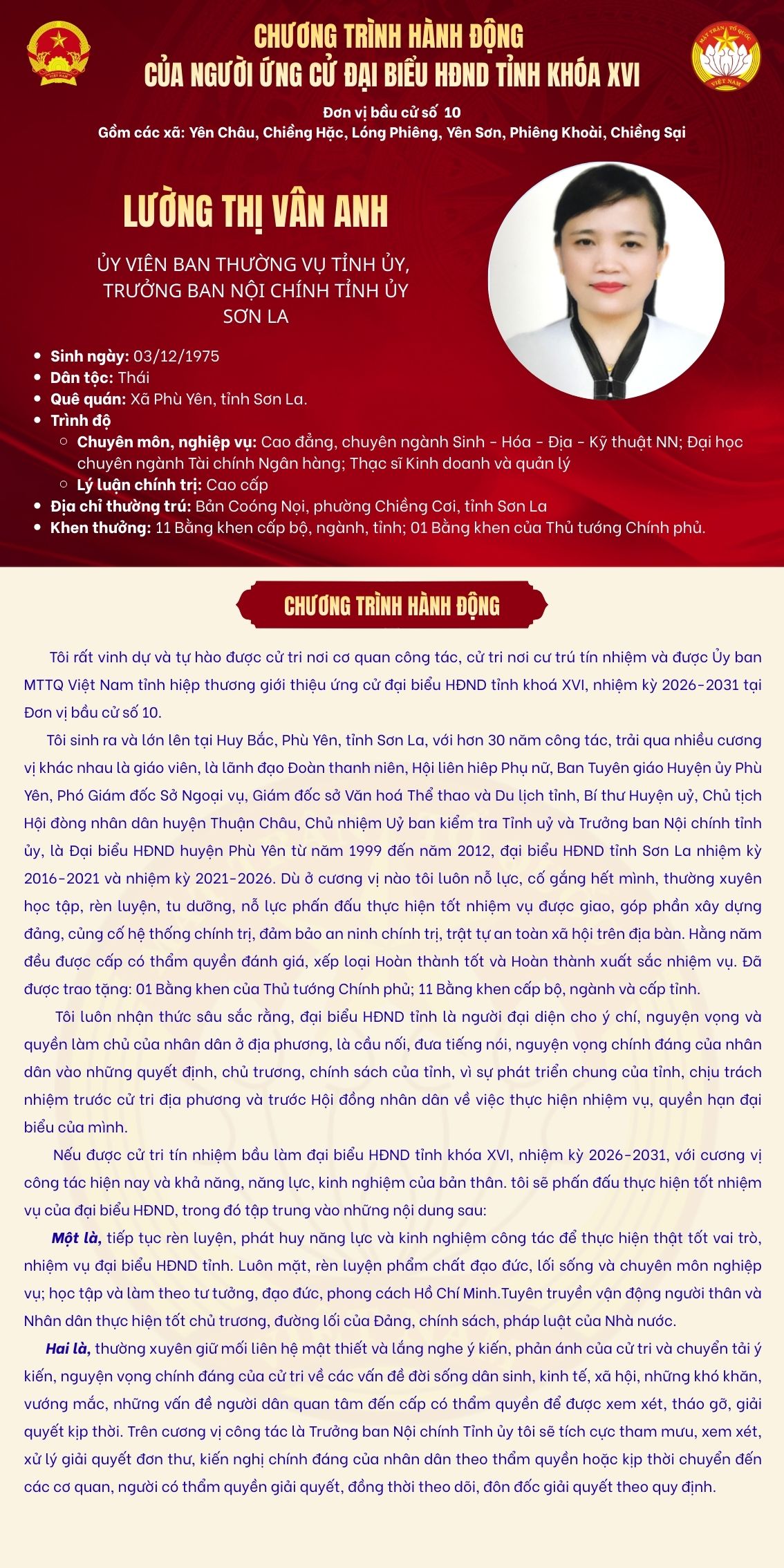 Tiểu sử tóm tắt và Chương trình hành động của đồng chí Lường Thị Vân Anh.