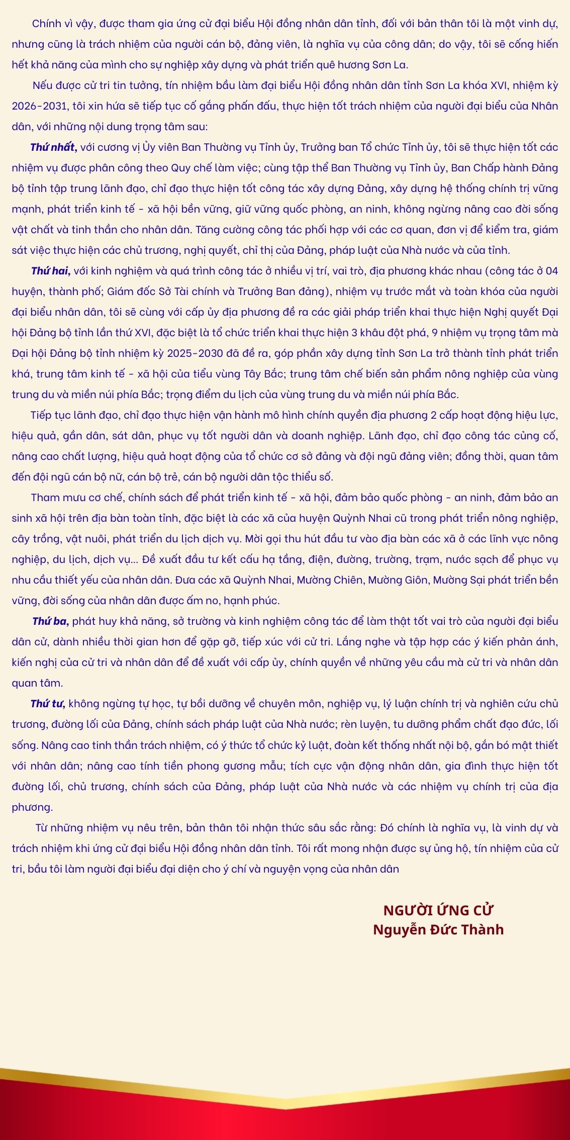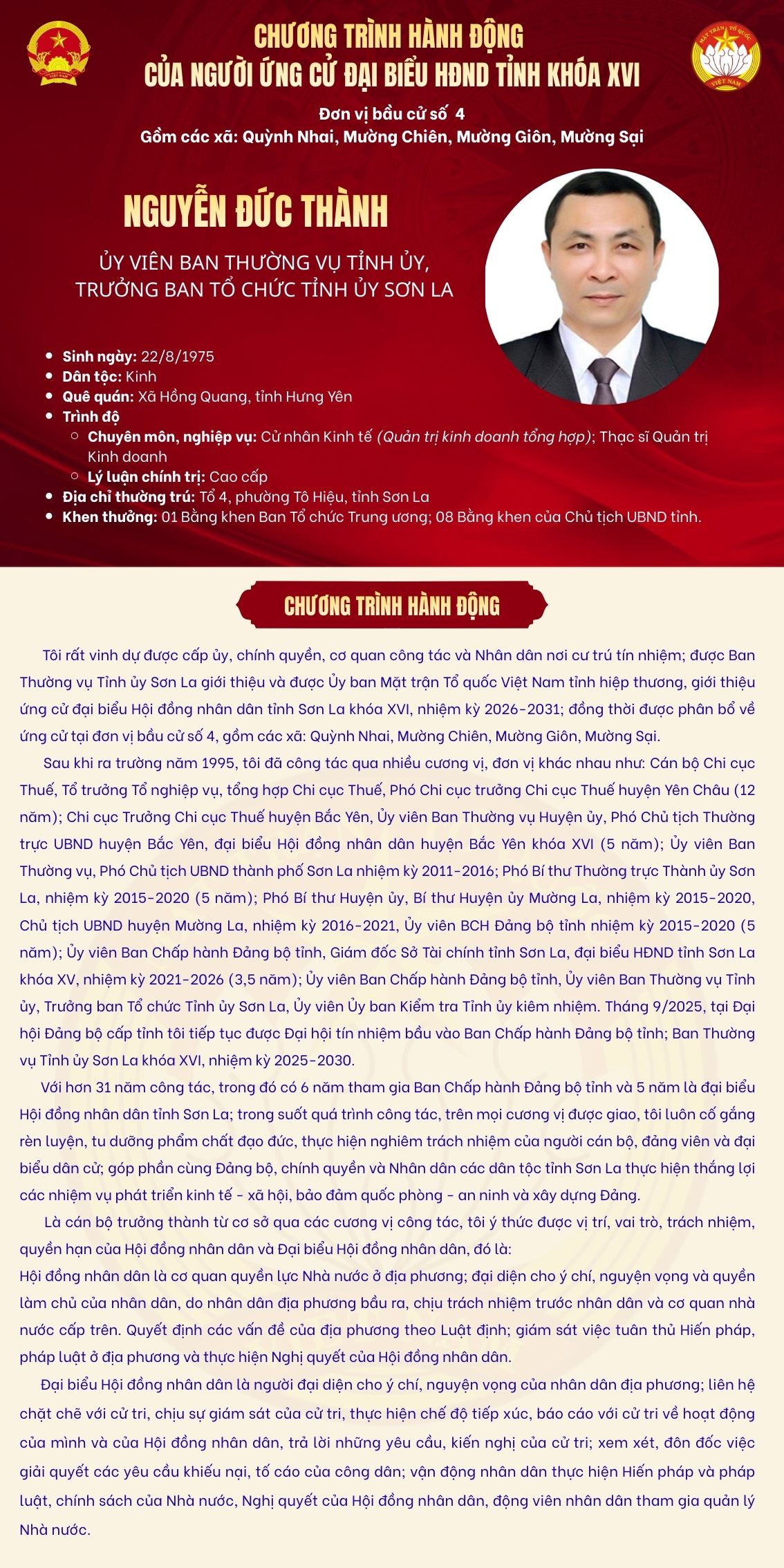 Tiểu sử tóm tắt và Chương trình hành động của đồng chí Nguyễn Đức Thành.