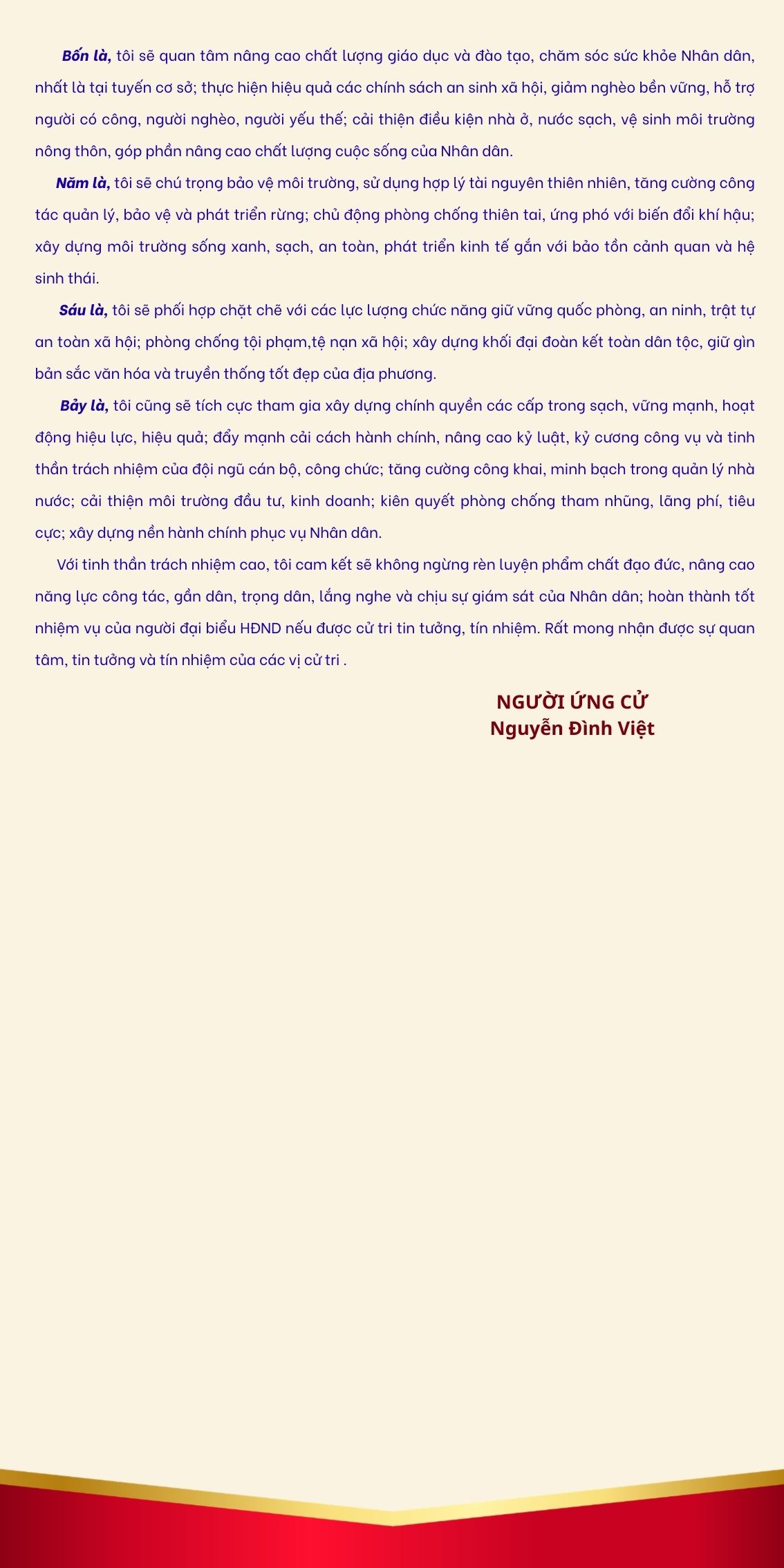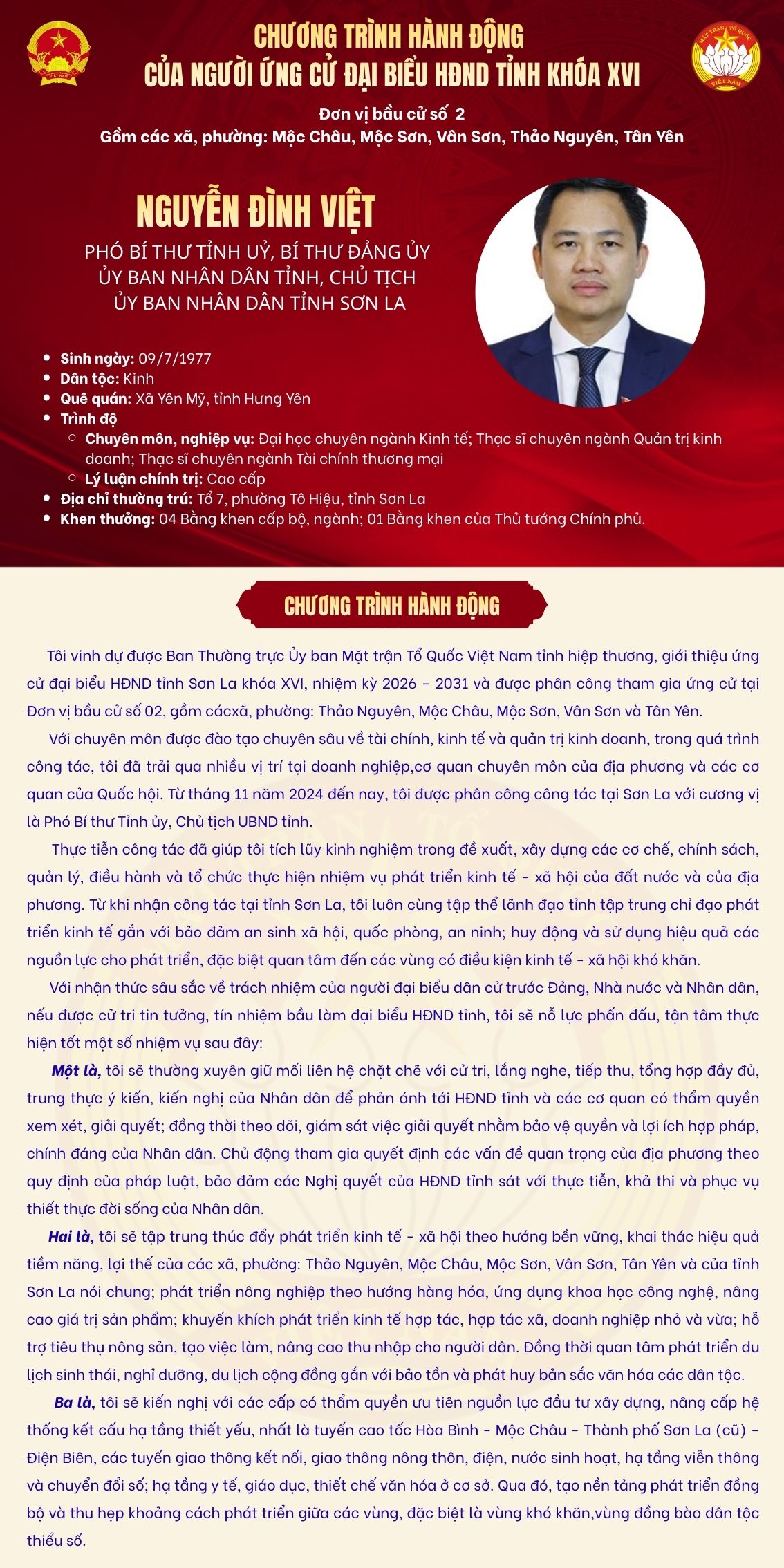Tiểu sử tóm tắt và Chương trình hành động của đồng chí Nguyễn Đình Việt.