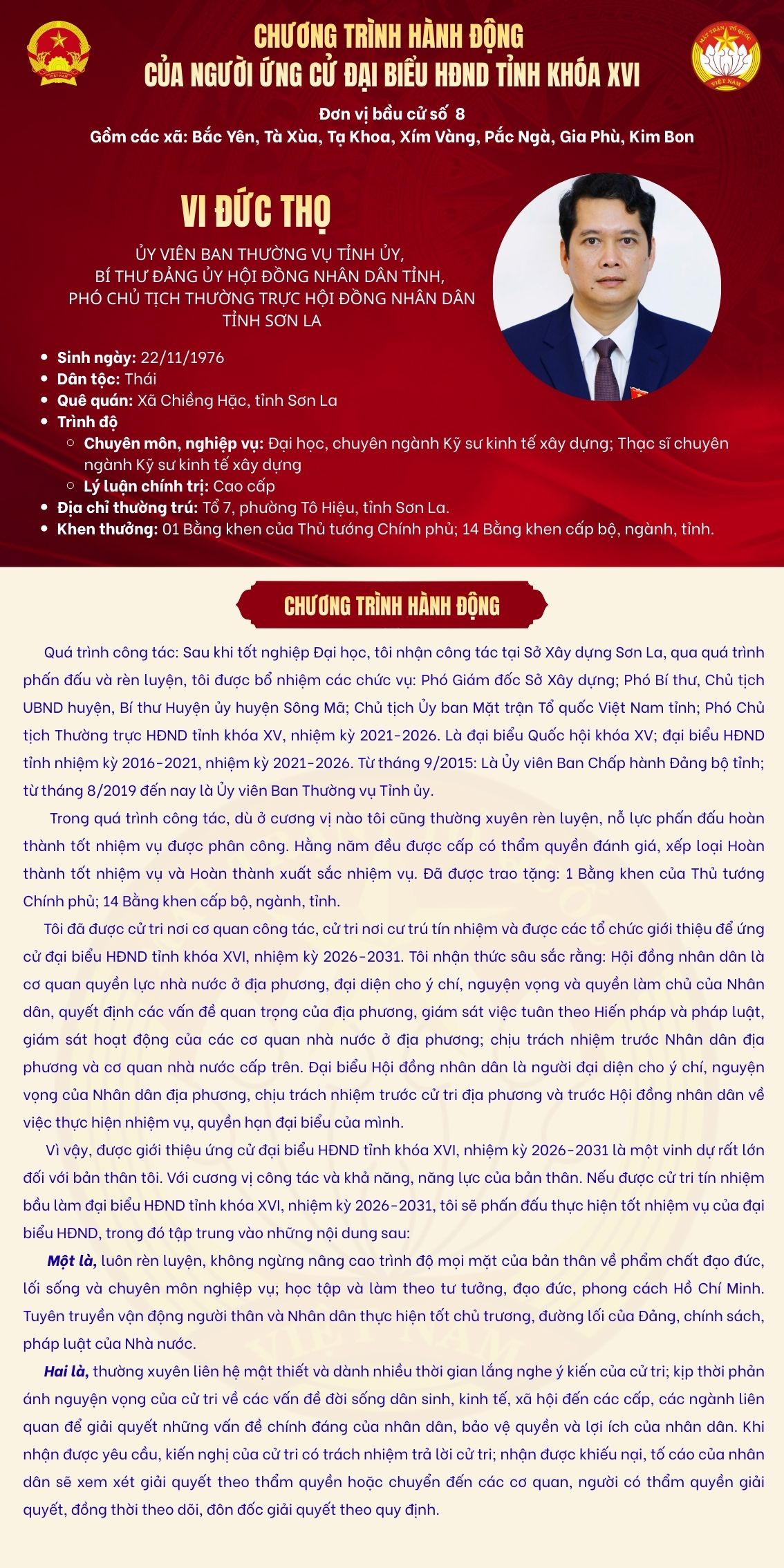 Tiểu sử tóm tắt và Chương trình hành động của đồng chí Vi Đức Thọ.