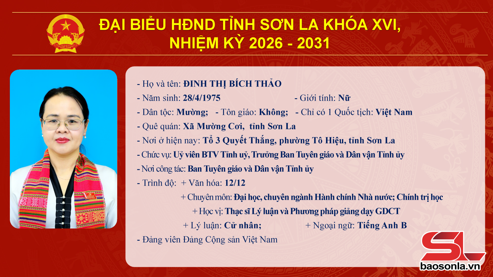 ĐẠI BIỂU TRÚNG CỬ HĐND TỈNH SƠN LA KHÓA XVI, NHIỆM KỲ 2026-2031